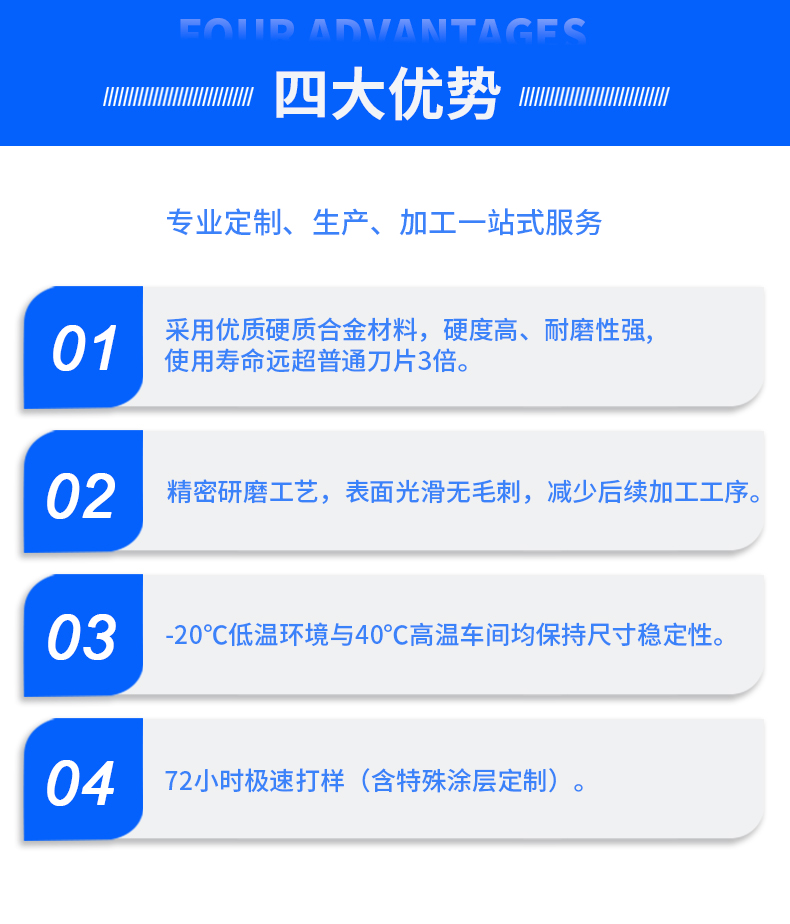 精密刃口加工:采用數(shù)控磨床研磨刃口,角度誤差≤±1°,表面粗糙度 Ra≤0.8μm,確保坡口角度精準(zhǔn)與表面光潔度;