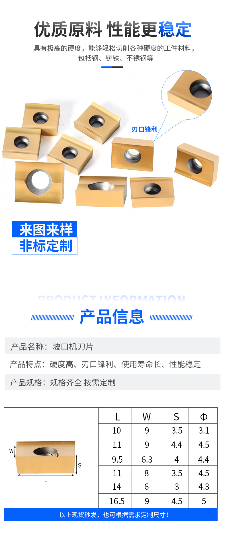 多元規(guī)格定制:支持刀片長(zhǎng)度 50-300mm、刃口角度 30°-60° 定制,適配手持式、臺(tái)式等不同坡口機(jī)型號(hào)。